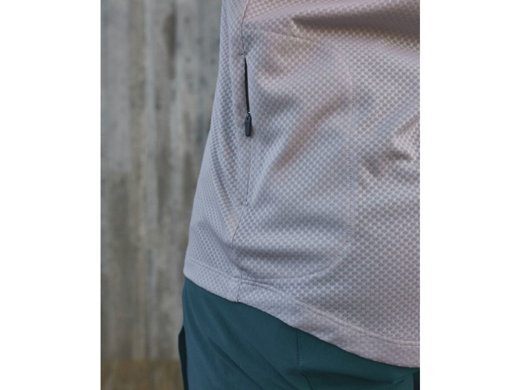 Dres noste při jízdě v cyklistickém parku: diskrétní kapsa na zip na levém boku poskytuje bezpečné uložení karty. Pokud vyrážíte na trail, lze tuto kapsu použít také k uložení malé energetické tyčinky nebo kreditní karty.