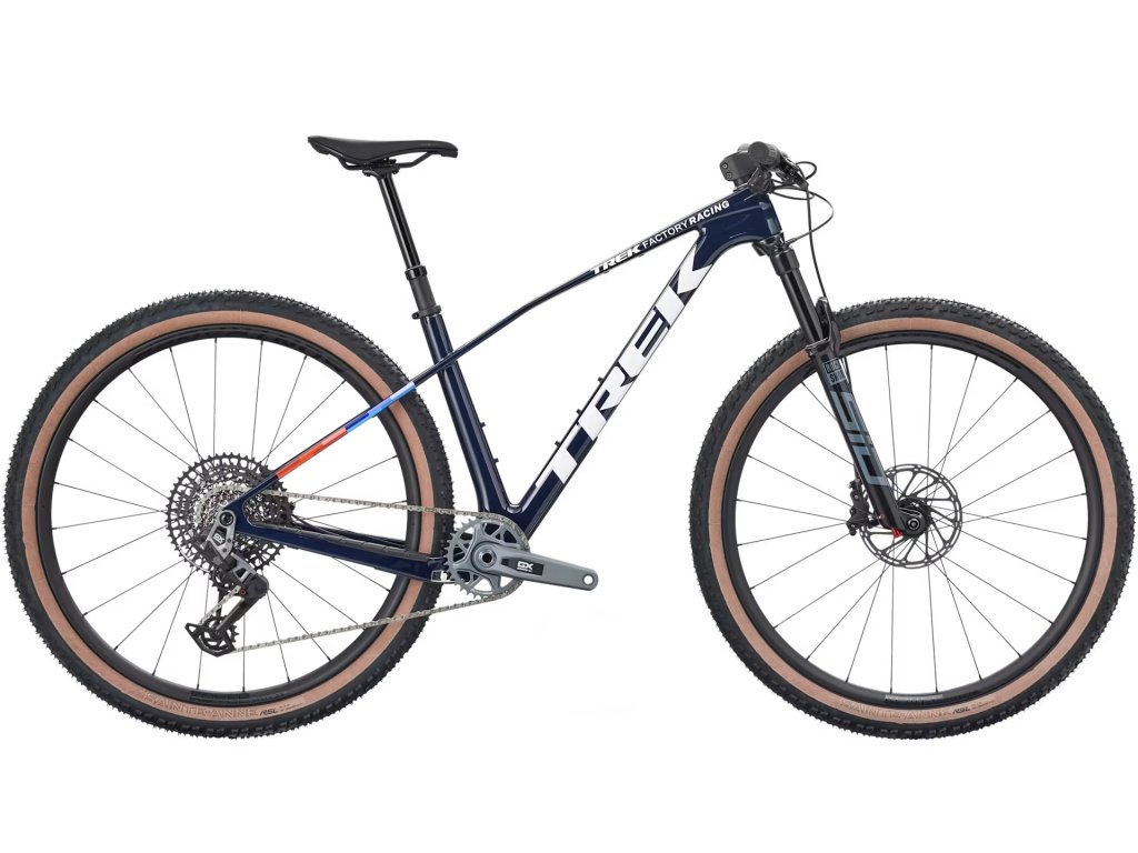 Karbonový rám OCLV Mountain s technologií IsoBow pro vyhlazování nerovností trailů. Vidlice RockShox SID se zdvihem 120 mm, pružina DebonAir, tlumení Rush RL a dálkové zamykání. Zcela bezdrátové 12rychlostní elektronické řazení SRAM GX AXS, 4pístkové hydraulické kotoučové brzdy SRAM Level Bronze, 29palcová karbonová kola Bontrager Kovee Elite 30 a integrovaná řídítka a představec Bontrager RSL z karbonu.